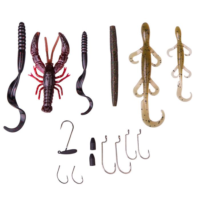 Dit is de perfecte Savage Gear kit voor het vissen met finessetechnieken zoals de Carolina, Texas of Wacky rig op grote baars! een 33 delige kit inclusief stevige visgerei doos.