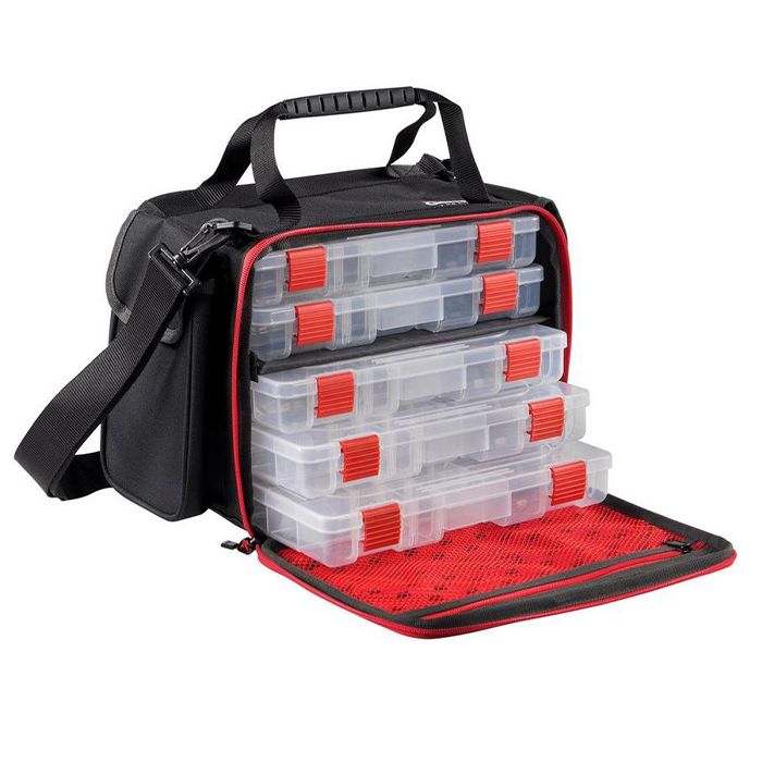 De Abu Garcia Medium Kunstaas Tas is een middelgrote vistas die met 5 lege tackleboxen wordt geleverd. De tas heeft een verstelbare schouderband en 2 draagriemen. De tas is voorzien van 2 zijvakken voor tangen en accessoires, alsmede een groot hoofdvak voor de tackleboxen.