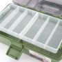 Daarnaast is de tackle box licht van gewicht en compact genoeg om gemakkelijk mee te nemen, maar toch ruim genoeg om al je essentiële visgerei in op te bergen. Dit maakt het ideaal voor zowel korte als lange vissessies. Je kunt de box eenvoudig dragen zonder dat het een zware last wordt, zelfs als je een lange afstand moet afleggen naar je visstek. Het compacte ontwerp zorgt er ook voor dat het makkelijk in je viskar of rugzak past.