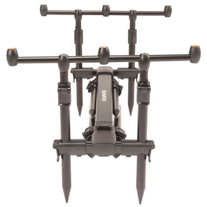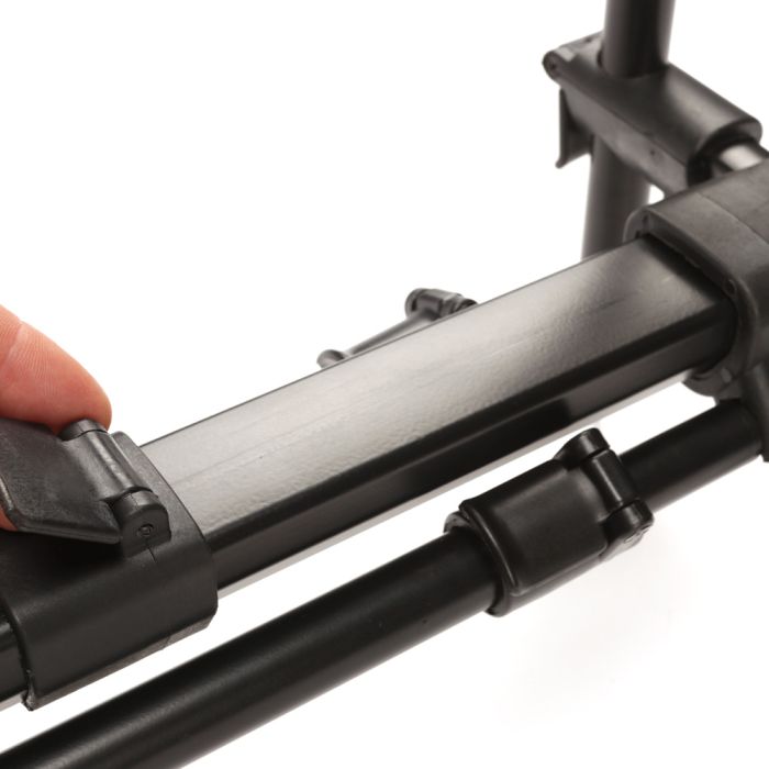 Bij het opzetten van de rod pod hoef je alleen de poten uit te schuiven en de buzzer bars vast te maken. Dankzij het verstelbare ontwerp kun je de hoogte en breedte van de rod pod aanpassen, afhankelijk van je persoonlijke voorkeur en de omstandigheden aan de waterkant. De rod pod is zo ontworpen dat hij op vrijwel elk oppervlak kan worden geplaatst, of dat nu een harde oever of een zachte modderbodem is.