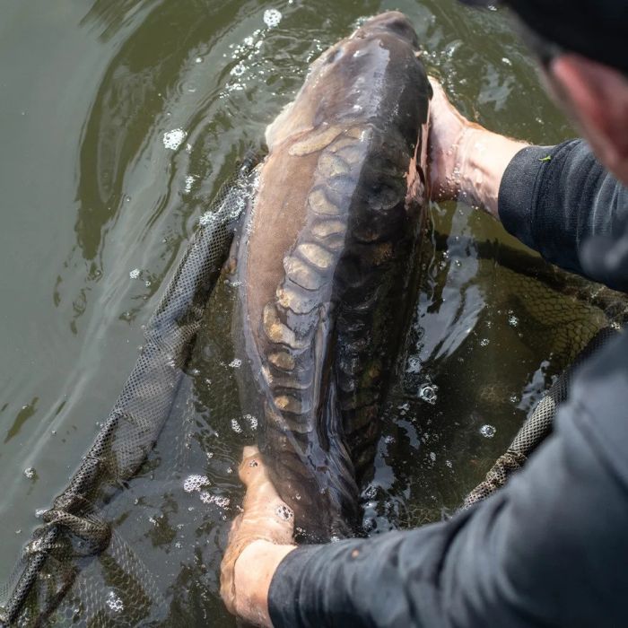 1. **Mat Zwarte Carbon Handgreep:** De handgreep van het schepnet is gemaakt van mat zwart carbon, wat zorgt voor een stevige grip en duurzaamheid. Dit betekent dat je erop kunt vertrouwen, zelfs bij zware vangsten.