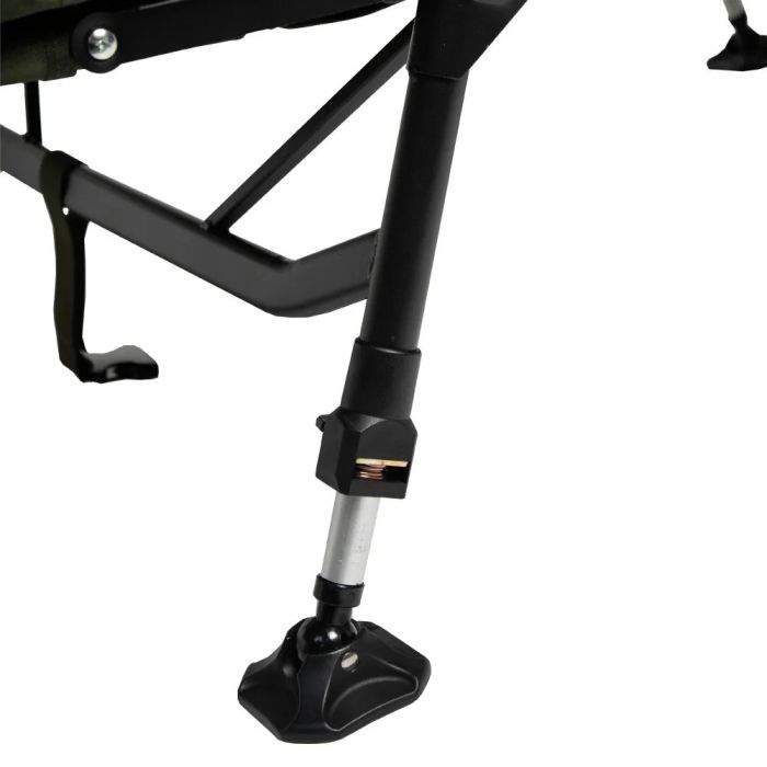 2. **Zes Verstelbare Poten met Moddervoeten**: Voor stabiele en betrouwbare ondersteuning op elke ondergrond, wat essentieel is op de vaak ongelijke oever van een viswater.
