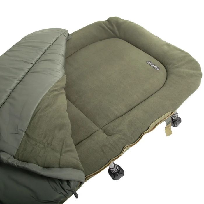 - **Gebruik**: Pas de lumbale ondersteuning aan je persoonlijke comfort aan en maak gebruik van de warme, isolerende lagen voor een goede nachtrust. De crashritsen zorgen dat je snel kunt reageren als de vishengels actie vereisen.