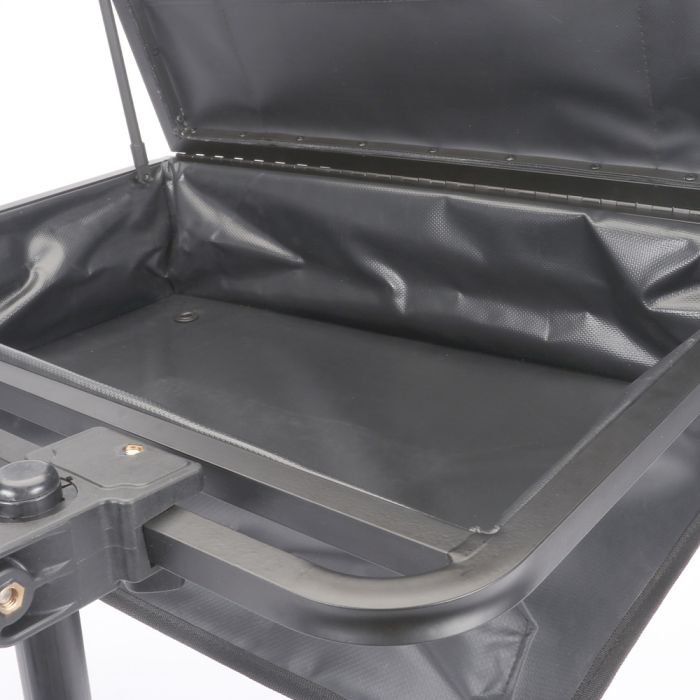 Een van de belangrijkste kenmerken van deze bait station is de ruime zijlade. Deze lade biedt snel toegang tot je belangrijkste visgerei zonder dat je hoeft op te staan of je hele opstelling hoeft te verplaatsen. Of je nu een tang, haak of loodje nodig hebt, alles is binnen handbereik. Dit bespaart niet alleen tijd, maar maakt het ook gemakkelijker om geconcentreerd te blijven op wat echt belangrijk is: het vissen.