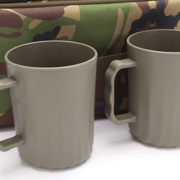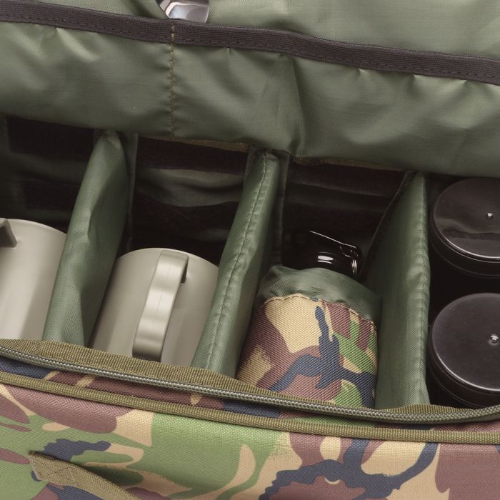 The Advanta Brew kit bag is arguably one of the most utilised pieces of tackle any angler’s armoury who spends extended periods of time on the bank in all weather conditions. Made using super hard wearing DPM camo materials the bag features internal dividers to allow for safe and quiet storage of all the necessary items that aid in making the perfect hot drink when fishing. The Advanta brew kit bag features a full zip top for quick and easy access and pack down and will enable anglers to keep everything in one place including their stove and kettle. This means you will never leave home without the right items and be left without a hot drink on the bank. The bag features 2 mugs, 2 teaspoon and 4 plastic pots (2 large and 2 small) to house items such as tea bags, sugar, coffee and powdered drinks such as powdered milk hot chocolate etc. The Kit also features a thermal milk bottle with an attractive DPM camo outer case to provide even further insulating properties to ensure your fresh milk stays fresh for your fishing session, even on warm days.