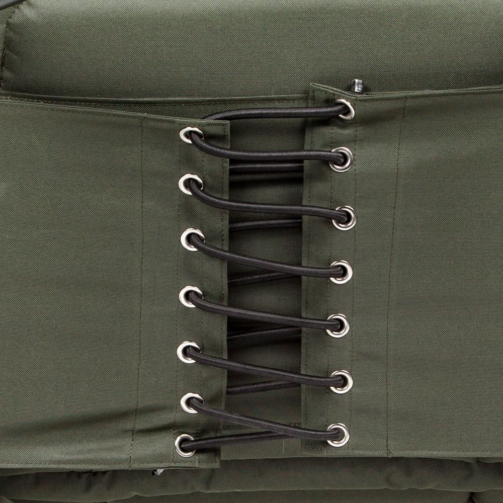 Een dikke, gevoerde schuimmatras en een integraal kussengedeelte zorgen voor diep persoonlijk comfort en creëren een stoel voor vissen, wat betekent dat u de oever nooit wilt verlaten.