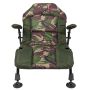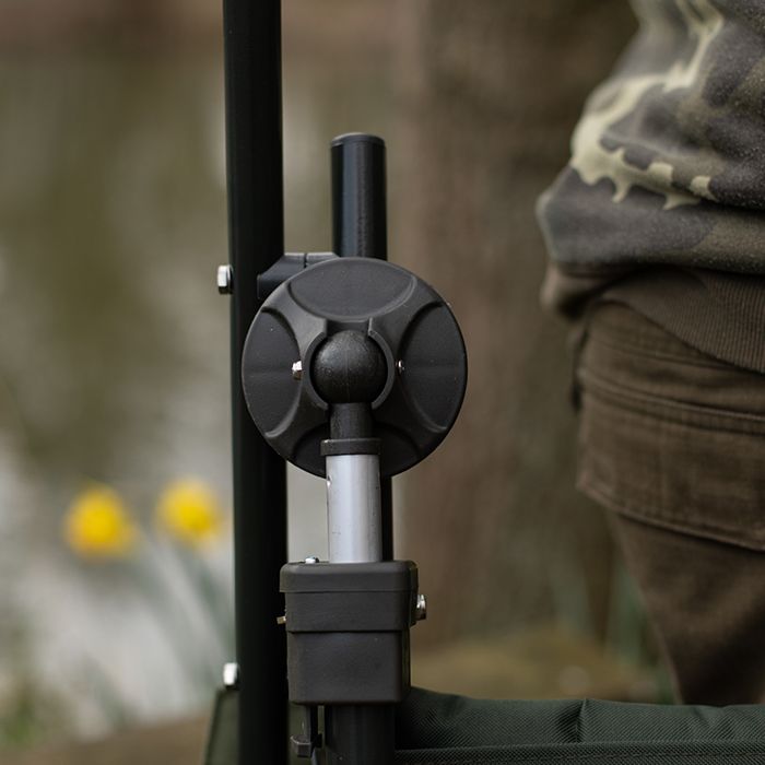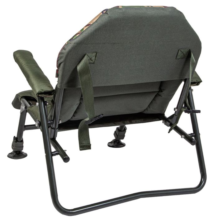De ideale stoel voor de mobiele visser. Lichtgewicht en duurzaam aluminium/staal vouwframe met sterke armleuningen. Twee verstelbare voorpoten, U-vormig achterpootsysteem. Push 'n' Lock Been Mechanisme. Grip-Hold Beensysteem. Egaliserende Moddervoeten. Dikke schuimstofmatras met kussengedeelte. Super duurzame DPM-hoes. Afmetingen: 30-38cm H (voorkant) x 50cm B x 40cm D. Gewicht: 5.3kg.