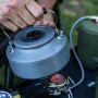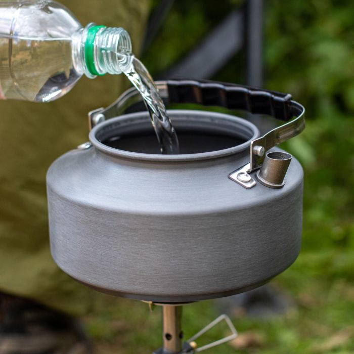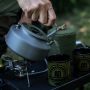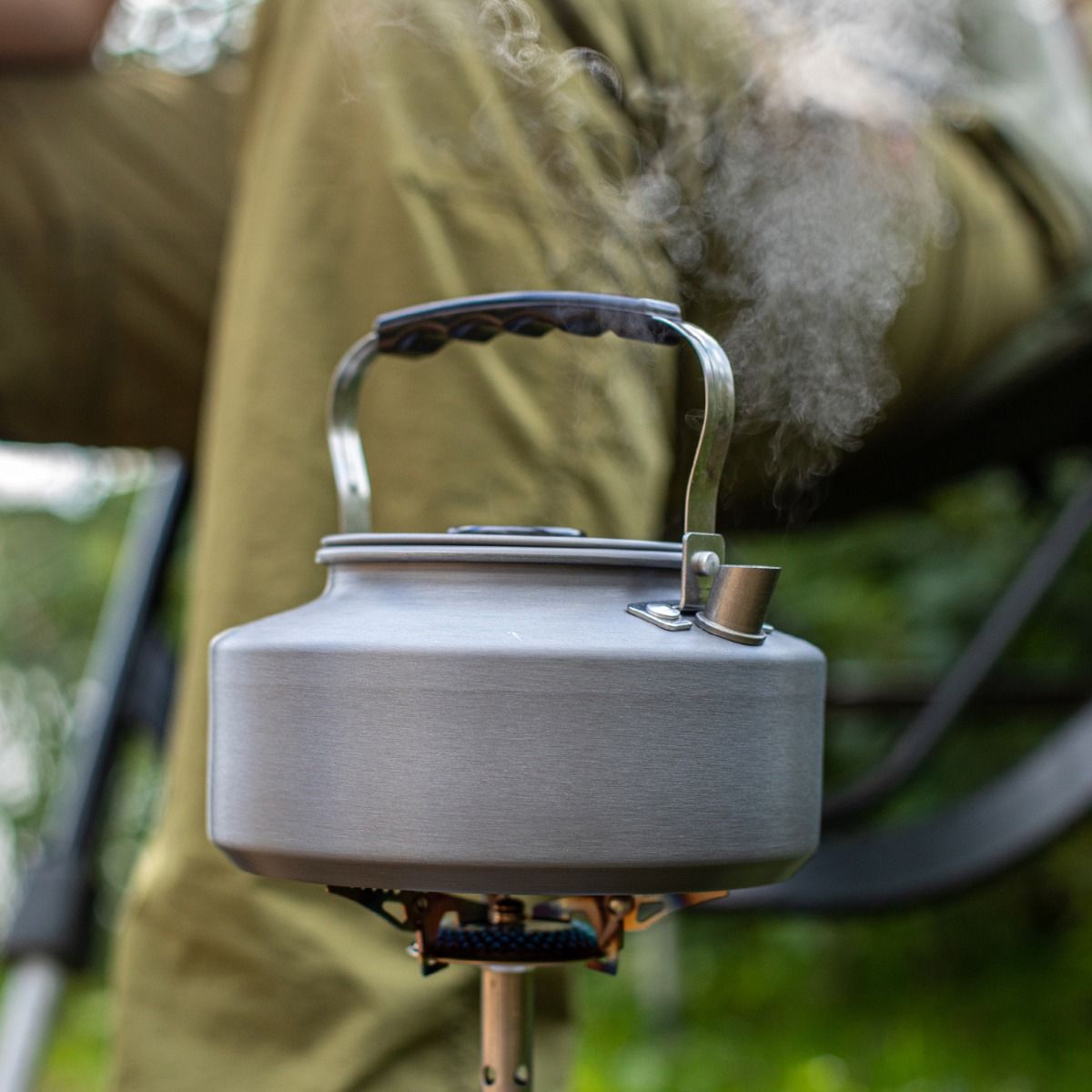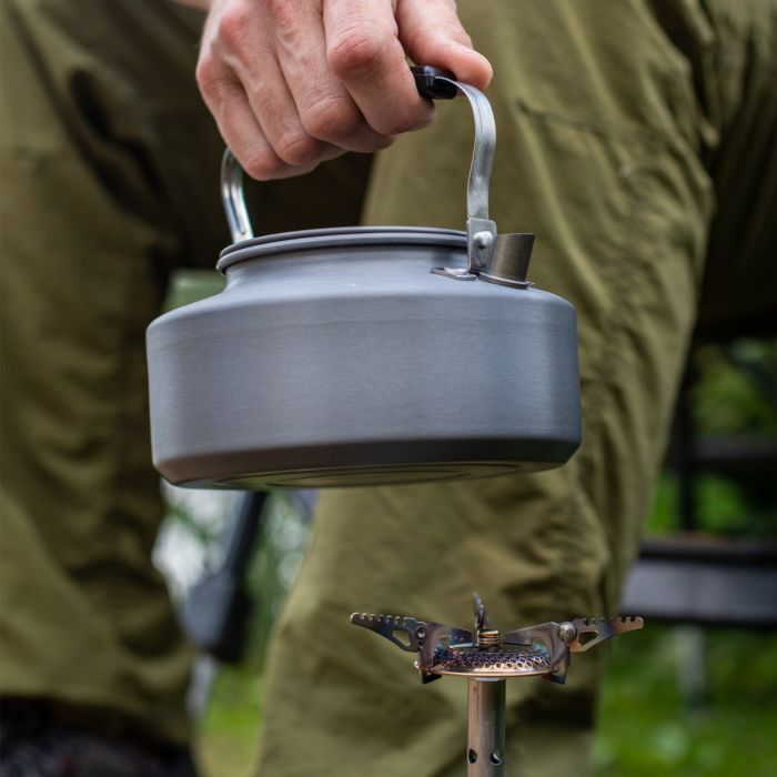 Geproduceerd uit geanodiseerde aluminiumlegering en roestvrij staal, dit is een slijtvaste, zware ketel die robuust genoeg is om het ruwe leven van de bank te weerstaan, terwijl hij licht genoeg is om met 170 g in een dagverpakking te worden geworpen voor een opwarming tot een korte sessie besluiten, of worden toegevoegd aan een volgeladen kar zonder problemen te veroorzaken als je voor een karpervisserij in het weekend gaat en de oever een echt thuis ver van huis wilt maken. 1,1 liter klinkt misschien niet veel, maar het komt neer op drie fatsoenlijke mokken uit één waterkoker - ideaal om je tijdens een lange solo-sessie bezig te houden en geweldig als je maar een paar uur met vrienden of familie aan het water zit.