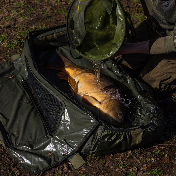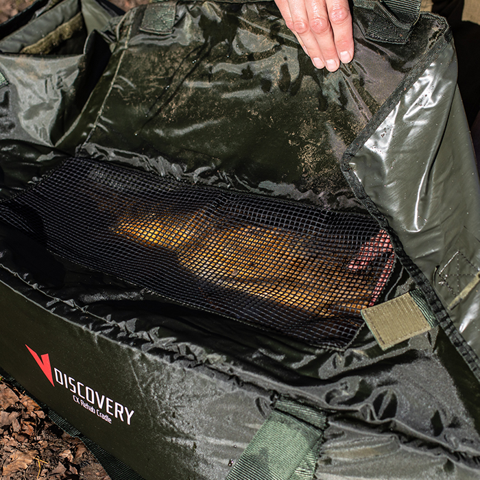 Een van die artikelen is de Advanta Discovery CX Rehab Onthaakmat. Zoals de naam al doet vermoeden is dit een cradle en onthaakmat in één. Dit zorgt ervoor dat je de vis veilig kunt onthaken en transporteren. Stel je vist op een schuine helling, dan wil je de vis waarschijnlijk dicht bij het water onthaken, om vervolgens enkele meters met de vis te lopen naar de fotoplek. Deze mat/cradle combi zorgt ervoor dat je de vis niet over hoeft te zetten in een andere cradle om deze vervolgens te kunnen transporteren (en het risico op beschadigingen kunt beperken). Op deze manier ervaart de vis minder stress en wordt het vissen voor jezelf ook een stuk comfortabeler!