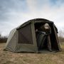 Als alternatief kan de bivak worden aangepast voor de warmere seizoenen met de oprolbare voorpanelen met gespen en de voor- en achterste gaasluiken op zowel de bivak als de overtrek. Dit zorgt voor ventilatie en houdt het ongedierte buiten. Er zijn ook drie deurpanelen die worden geleverd met het product van groen, helder of gaas, zodat u kunt aanpassen aan het weer. Dit is vooral ideaal voor langere en continentale reizen. Hoe dan ook, de Endurance bivak is een perfecte oplossing voor de ultieme visser het hele jaar door.