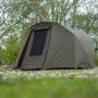 3. **Pas Aan:** Zorg ervoor dat de overwrap goed is vastgemaakt en goed aansluit op de bivvy, om te voorkomen dat er water of wind binnendringt.