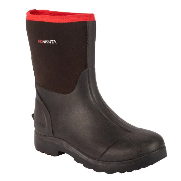 Advanta Neoprene Angler Mid Boots, The Advanta Neoprene Angler mid length boots are the ultimate in comfort, warmth, and durability to offer a superb boot that is suitable for angling, farming, gardening. The Advanta neoprene boots feature a dual material makeup, using rubber soles and upper and neoprene calf grips to create an exceptionally comfortable boot for walking longer distances and everyday use. The shorter grip that will sit approximately halfway up the calf is made of soft and warm 5mm neoprene; a material most associated with wetsuits meaning keeping you dry is not an issue, neoprene is extremely flexible and will grip the calf for maximum comfort and freedom of movement. The Shorter height of the Advanta Angler mid boots makes them very easy to put on and take off and are very comfortable for walking longer distances. The Advanta neoprene mid boots also feature a heavy-duty rubber sole which are cleated for extra grip on wet and slippery surfaces and feature a kicker at the base of the boot to make kicking the boots off easy and convenient. Available in sizes UK 8-12
