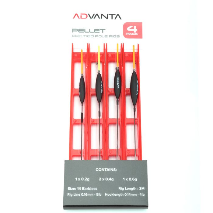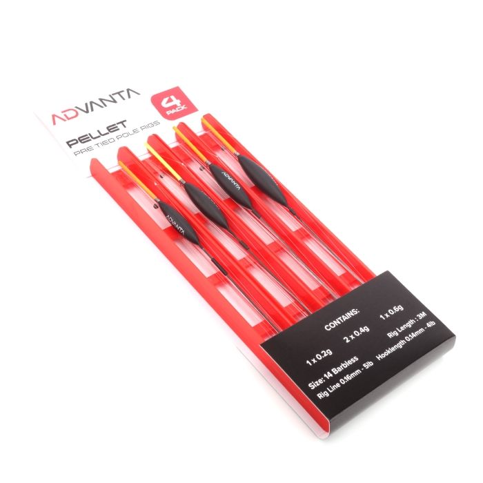 Als visser weet je hoe belangrijk het is om de juiste rig te gebruiken voor de omstandigheden waarin je vist. De Advanta Pre Tied Pole Rigs - Pellet, Grootte: 0.2g - 0.4g x 2 - 0.6g, Aantal: 4 Pack is ontworpen met gemak en efficiëntie in gedachten. Deze kant-en-klare rigs zijn perfect voor het vissen met pellets en bieden alles wat je nodig hebt om met vertrouwen te vissen, of je nu in vijvers, meren of langzaam stromende kanalen vist. Laten we dieper ingaan op waarom deze rigs een geweldige keuze zijn voor elke visser.