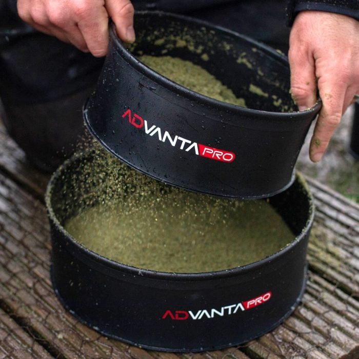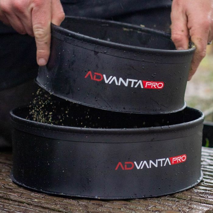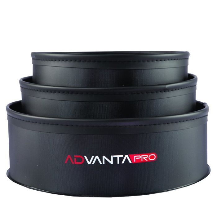 Advanta Pro EVA Round Ground Bait Bowl & Riddle Set Of 3, The Range of Advanta Pro EVA Luggage has been designed to offer exceptional quality and features to anglers who need to be organized when fishing for a wide variety of species. EVA material is a modern and lightweight option to conventional polyester materials and canvas type luggage. The benefits to EVA are they are exceptionally hardwearing, very lightweight and can be easily and thoroughly cleaned after your session. The wide range of luggage options within the Advanta Pro range means you can organize your tackle and accessories to be efficient in your angling. The Advanta pro range of EVA luggage features all the necessary luggage items to ensure you are well organized on the bank and when getting ready for your next session. The Advanta pro EVA luggage is made from high quality 1mm thick EVA material meaning its exceptionally stiff, ensuring all your tackle is safe and secure. The Advanta Pro EVA luggage is made from 100% waterproof material and uses seam welding technology to create secure fixings along all the seams. This seam technology created very neat corners which make items like the bait bowls fully waterproof and very easy to mix baits such as ground bait evenly. Each of the storage items also feature transparent lids on the storage items to identify your gear easily and quickly when you are setting up or packing down. The Advanta Pro range of luggage is a must have for any serious angler who wants to get organized, tidy, and cut down on some of the weight of traditional bags and cases.