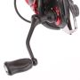 De handgreep is verwisselbaar voor zowel links- als rechtshandig gebruik, waardoor de molen veelzijdig is en aan de behoeften van elke visser kan voldoen. De dikke beugeldraad en lijnvriendelijke lijnclip zorgen voor een probleemloze lijnopname en voorkomen dat je lijn beschadigd raakt tijdens het vissen.