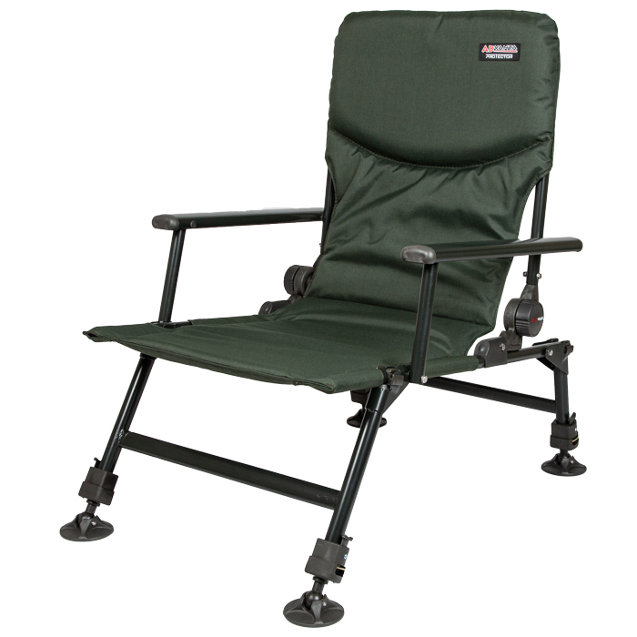 De Advanta Protector Standen Visstoel heeft 4 individueel in hoogte verstelbare poten, een Push n Lock poot mechanisme en egaliserende modderpoten zodat deze stoel zich kan aanpassen aan elk terrein waar je vist. Deze comfortabele stoel zal je veilig houden tijdens het vissen of gewoon lekker achterover leunend om van de natuur te genieten!