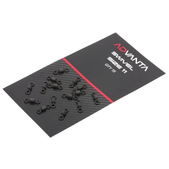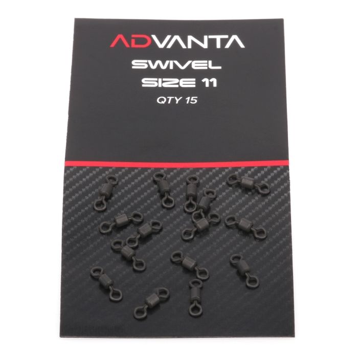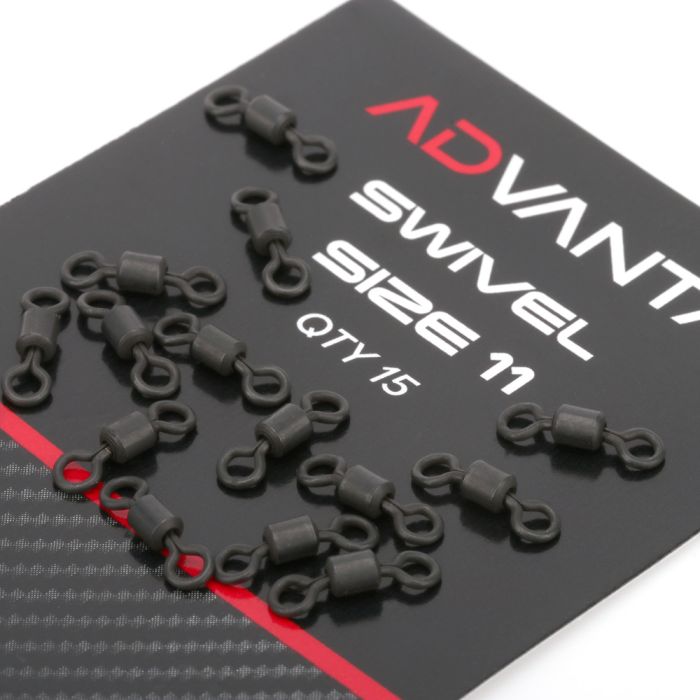 The Advanta Swivels are available in two sizes to offer the essential link between mainlines, leaders and rigs. The Advanta swivels feature a free running and anti-twist internal structure meaning they will add movement to rigs or reduce tangles and reduce line twist. The Advanta size 8 swivels are compatible with other accessories in the range such as our lead clips and the size 11 swivels are perfect for tying on baits or adding movement to your hooking arrangement. The Advanta swivels are supplied in packs of 15 for anglers who like to prepare multiple rigs before their session. Each swivel is finished in a matt black colour to ensure your rig is concealed on the lake or riverbed. The Advanta Terminal tackle range features all the essential items to construct multiple rigs easily and affordably. Each item has been manufactured from the highest quality materials to ensure quality when it counts.