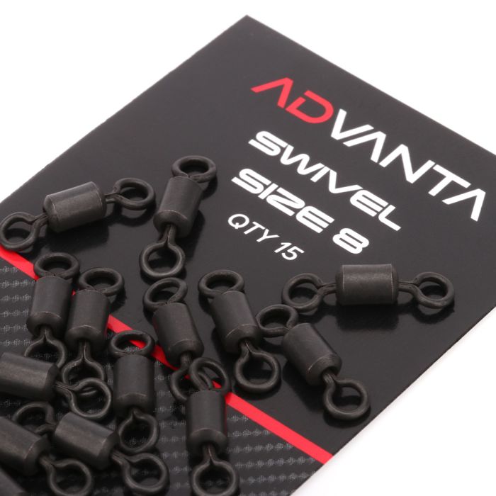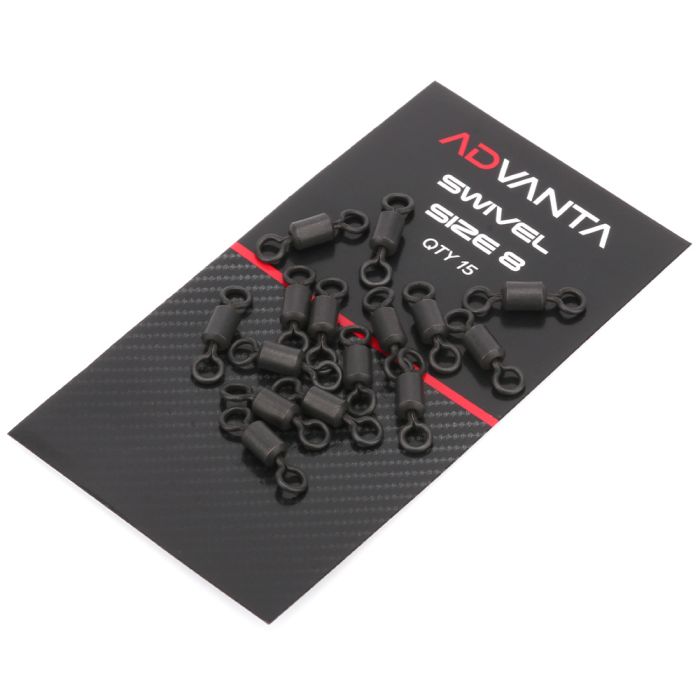 The Advanta Swivels are available in two sizes to offer the essential link between mainlines, leaders and rigs. The Advanta swivels feature a free running and anti-twist internal structure meaning they will add movement to rigs or reduce tangles and reduce line twist. The Advanta size 8 swivels are compatible with other accessories in the range such as our lead clips and the size 11 swivels are perfect for tying on baits or adding movement to your hooking arrangement. The Advanta swivels are supplied in packs of 15 for anglers who like to prepare multiple rigs before their session. Each swivel is finished in a matt black colour to ensure your rig is concealed on the lake or riverbed. The Advanta Terminal tackle range features all the essential items to construct multiple rigs easily and affordably. Each item has been manufactured from the highest quality materials to ensure quality when it counts.