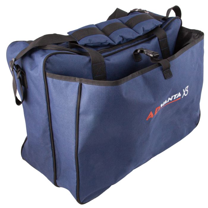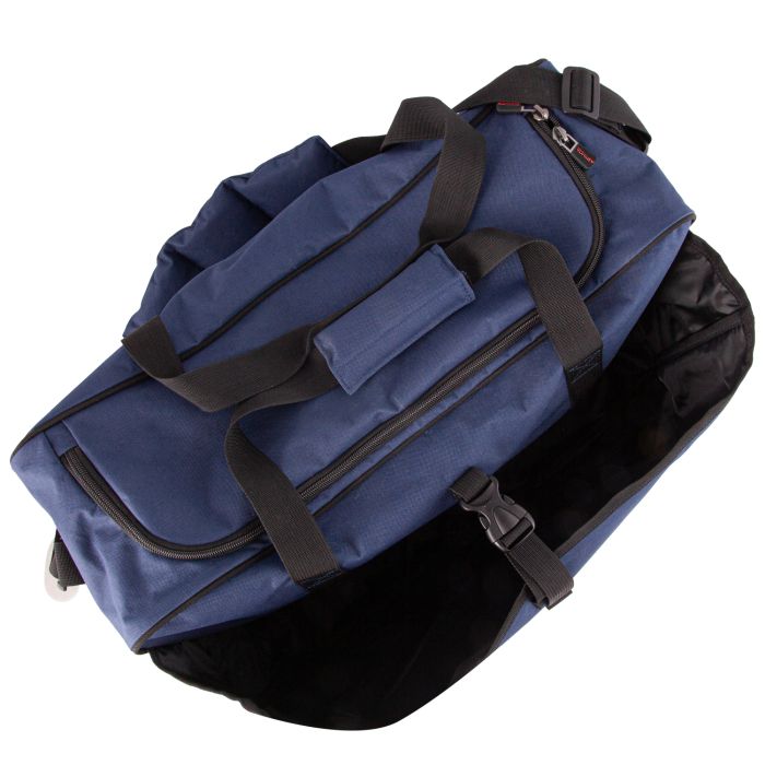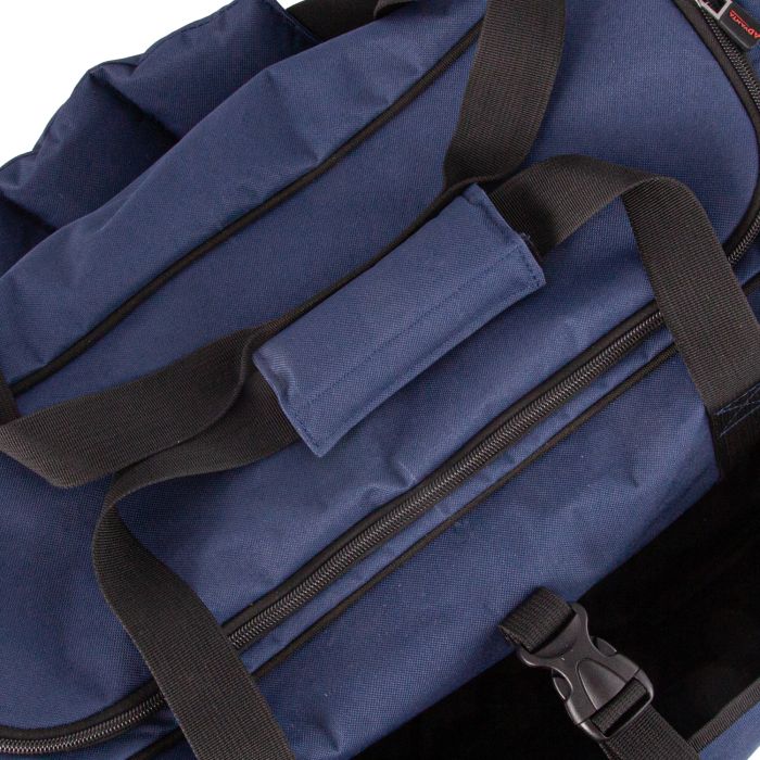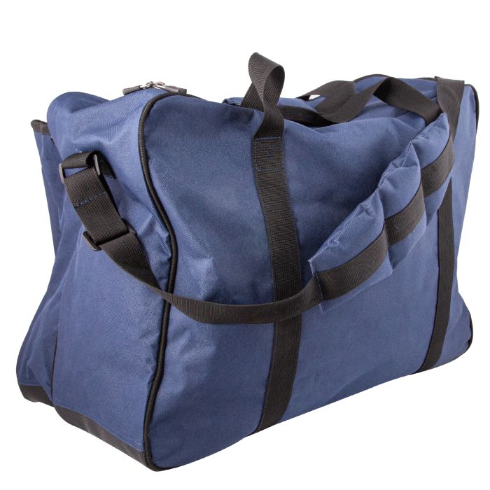 Vervaardigd uit extreem slijtvast 600D polyester. Voorzien van een versterkte waterdichte basis. Groot hoofdcompartiment met een dubbele rits voor gemakkelijke en snelle toegang. Open toegang tot het externe netzakje aan de voorzijde met riem en gesphouder. Gevoerde en verstelbare schouderriem. Super duurzame handgrepen. Afmetingen: 56cm L x 28cm B x 40cm H.