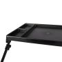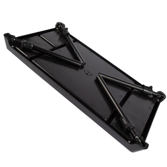 The Advanta Bivvy Table is designed to provide storage and accessibility for frequently used tackle items during a fishing session. It allows the angler to be organised and uncluttered, keeping things such as tackle box, phone, car keys and tea mugs off the ground and close to hand. The large size of this table ends itself well for use on 24 hour or longer sessions. Each leg folds up neatly for storage and features a cam locking extension so the table can be used on uneven ground. The legs also feature flat ends to protect ground sheets when used inside the tent.