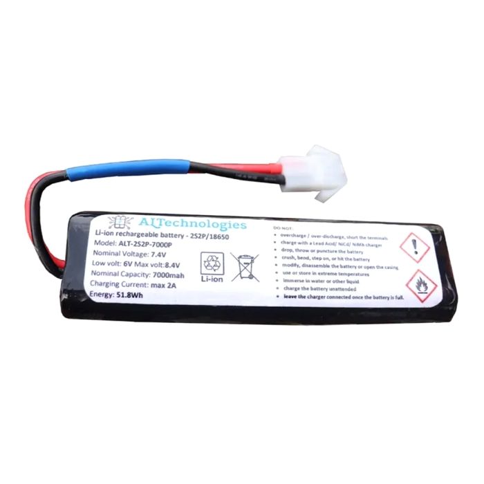 1. **Spanning en Capaciteit**: De batterij heeft een spanning van 7.4V en een capaciteit van 7Ah. Dit zorgt voor consistente en betrouwbare prestaties, waardoor je voerboot langer gebruikt kan worden zonder onderbrekingen.