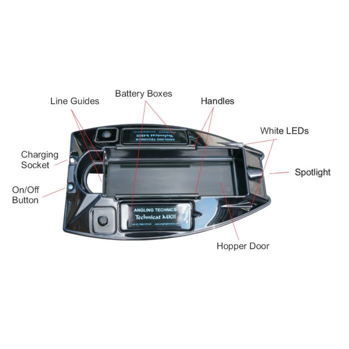 De Technicat is de nieuwste aanwinst in het assortiment van Angling Technics. Hij heeft een enorme centrale hopper die tot 3 kg aas kan dragen, en het krachtige navigatielicht aan de voorzijde is zeer goed.