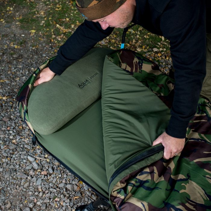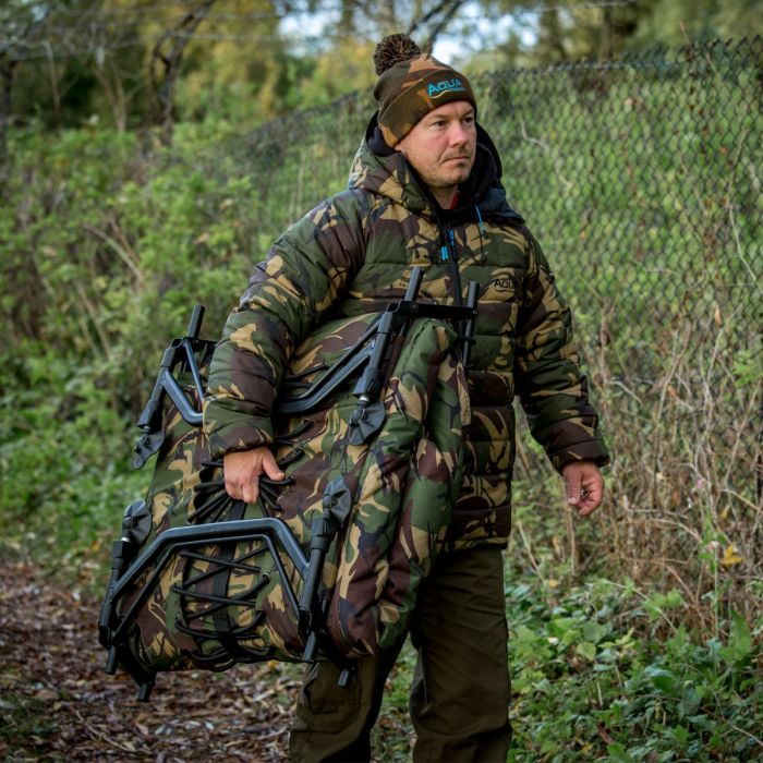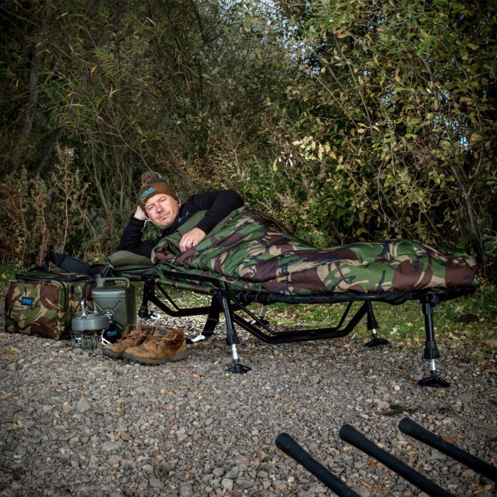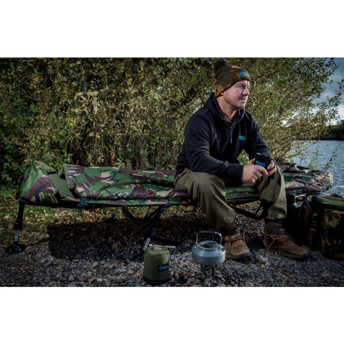 Ons allereerste bedsysteem is nu verkrijgbaar in het camouflage DPM-patroon en vormt een belangrijk onderdeel van het spannende Atom-concept. Het DPM Atom Bed Systeem is ontstaan uit een sterke focus op het creëren van een bedsysteem dat de perfecte balans biedt tussen mobiliteit en comfort. Het is ontworpen en ontwikkeld om laag te zitten in compacte schuilplaatsen om optimale prestaties te bieden voor de mobiele vissers. Het DPM Atom Bed Systeem bestaat uit een laag geprofileerd aluminium frame met zes poten voor een gelijkmatige gewichtsverdeling en een volledig verstelbare lendensteun. De matras is zelfopblaasbaar, dus het gebruikt lucht om het comfort op maat te maken en zo veel mogelijk gewicht te besparen. Combineer dit met de 3-seizoensslaapzak van prestatiegerichte AQUATEXX en geavanceerde holle-vezelvullingen, en dit is de perfecte oplossing voor veeleisende moderne vissers.