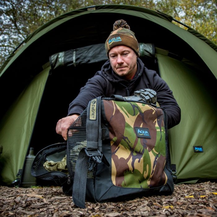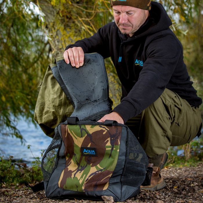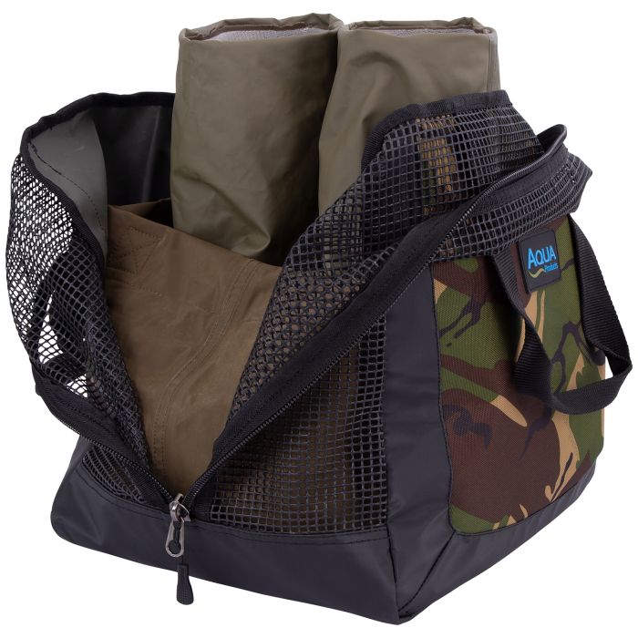 Dit is speciaal ontworpen voor het opbergen van borstwaders, extra kleding of schoeisel. De zijpanelen van rubbergaas maken ventilatie mogelijk, zodat natte spullen snel drogen zonder dat ze vocht bevatten. Dit voorkomt ongewenste geuren, waardoor het de perfecte oplossing is om uw auto vrij te houden van vuil. De tas is voorzien van een waterbestendige, slijtvaste basis, die perfect geschikt is om ondersteboven te worden geklapt om opgerolde waders te bedekken wanneer ze naast hengels moeten worden achtergelaten. Hierdoor wordt voorkomen dat er vocht in de waders ontstaat voor wanneer ze het meest nodig zijn. De comfortabele draaggrepen kunnen in de grond worden vastgepind als het waait.