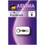 Ashima Ring-wartels zijn gemaakt van hoogwaardig zwart gecoat staal. Door de mat zwarte kleur vallen de wartels onder water minimaal op. Al onze wartels hebben een trekkracht van 25 kilo. Ashima Ring wartel maat 8 past op bijna alle leadclips die op de markt verkrijgbaar zijn. Geleverd per 10 stuks in een verpakking.