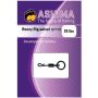 Ashima ronny rig wartels zijn gemaakt van hoogwaardig zwart gecoat staal. Door de mat zwarte kleur vallen de wartels niet op onder water. Ashima Ronny rig wartels hebben een trekkracht van 25 lbs. Door onze unieke diameter van de wartel past deze op bijna alle haken van maat 4 t/m 10. Deze wartels zijn ook zeer geschikt voor een zogenaamde hinged "Adjustable" ronny rig. De dunne diameter zorgt ervoor dat de wartel vrij kan bewegen in het oog van de haak. Verkrijgbaar in verpakkingen van 10 en 50 stuks.