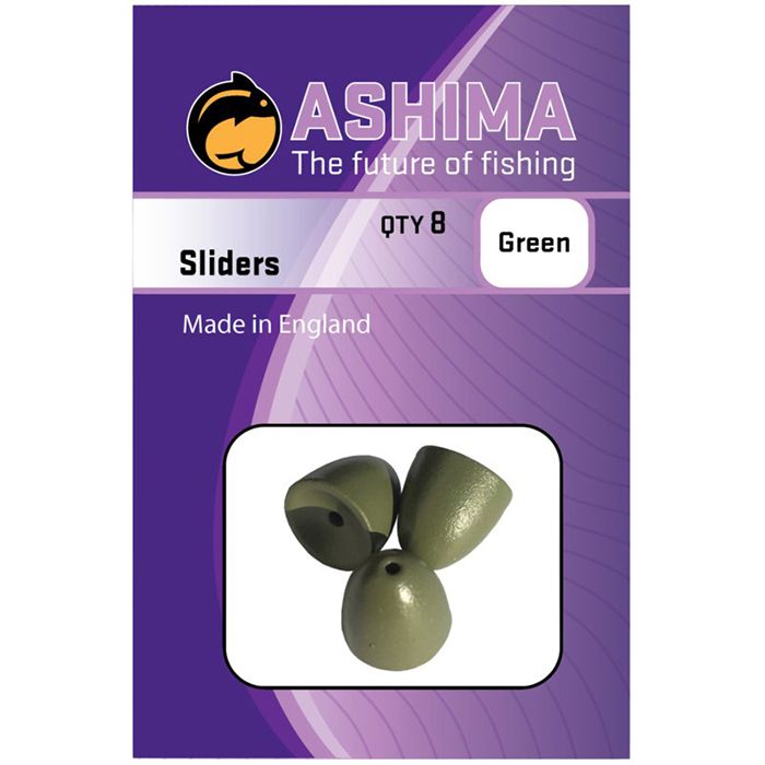 Ashima Sliders are ideal if you want to be sure that your rig assembly will stay on the bottom. The sliders are coated in an army green color and weigh 5 grams. There are 8 pieces in a package.