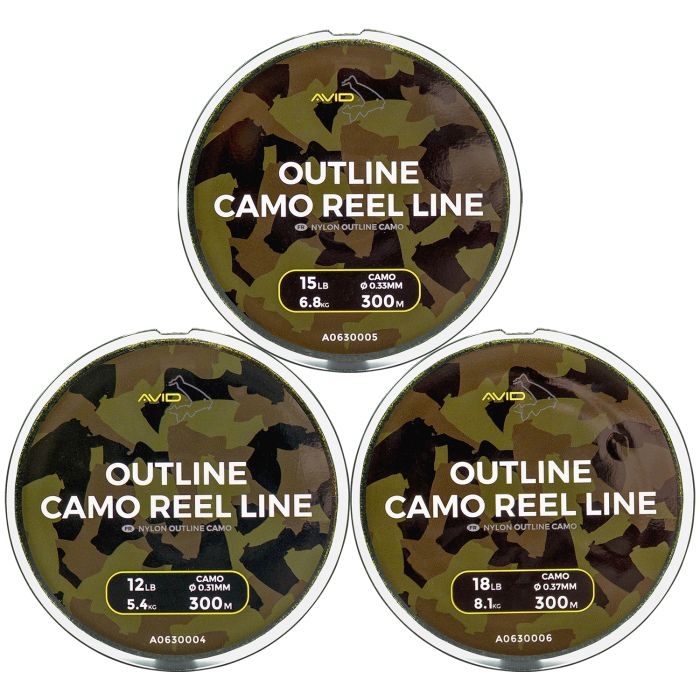 Outline Camo Molen Lijn is beschikbaar in zowel 1000m spoelen die perfect zijn voor het vullen tot 3 spoelen & 300m spoelen voor het vullen van enkele spoelen.
