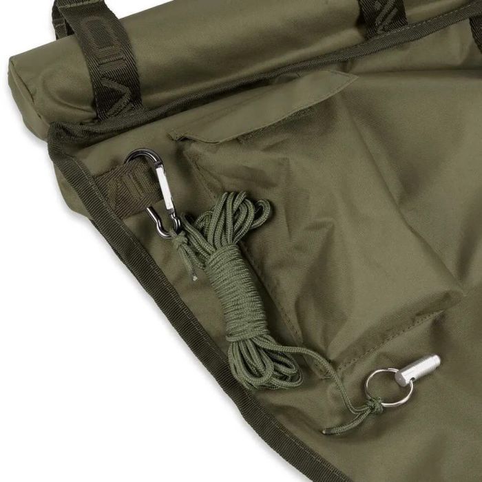 De sling is gemakkelijk te openen en te sluiten met veilige, roestvrije ritsen. Dit maakt het gebruik ervan snel en eenvoudig, waardoor je meer tijd overhoudt voor het vissen zelf.