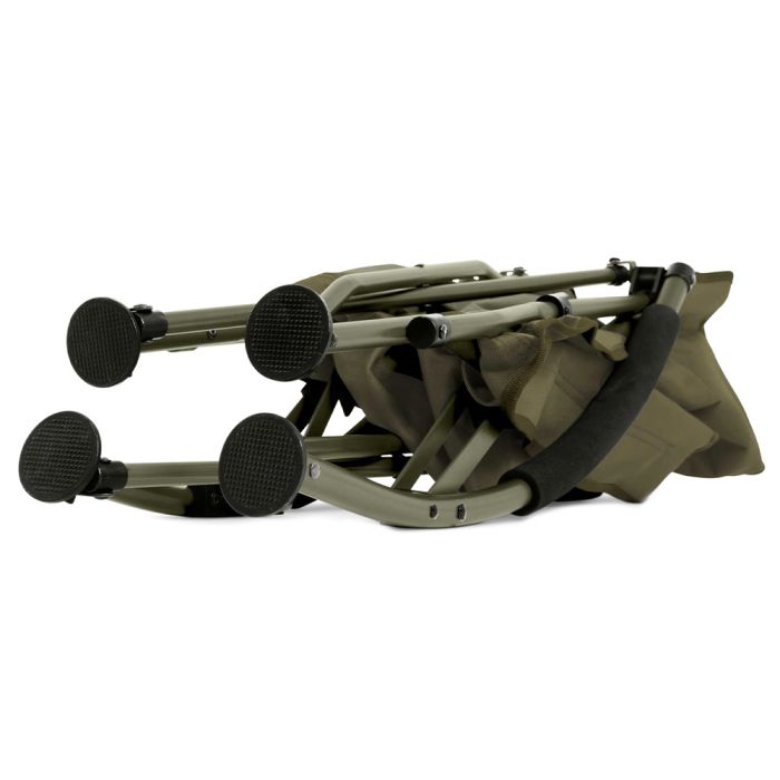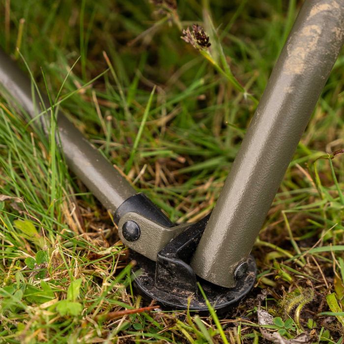 De stoel is voorzien van **verstelbare poten**, zodat je de hoogte en hoek kunt aanpassen aan de ondergrond. Dit maakt de stoel uiterst stabiel, zelfs op oneffen terrein zoals rotsachtige oevers of zachte grond. De poten zijn ook uitgerust met **rubberen voetjes**, wat zorgt voor extra grip op gladde of zachte ondergronden. Dit voorkomt dat de stoel wegglijdt, waardoor je altijd stevig zit, ongeacht de omstandigheden.