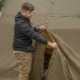 Daarnaast is de shelter ruim genoeg om niet alleen al je uitrusting op te bergen, maar ook om comfortabel met meerdere vissers te gebruiken. Dit is vooral handig tijdens langere sessies of nachtvissen, waarbij extra ruimte altijd welkom is. De grote ingang met rits biedt gemakkelijke toegang, zelfs als je je handen vol hebt met uitrusting.