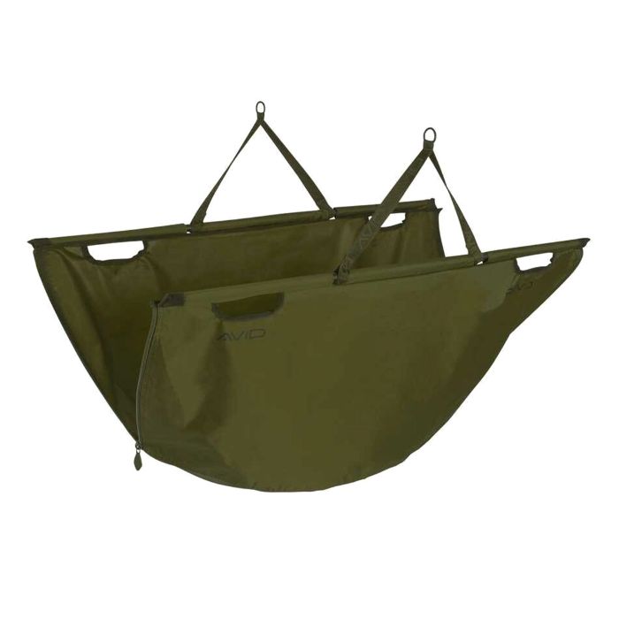 De Avid Carp Revolve Weegzak is voorzien van verstevigde handvatten die het tillen van de zak eenvoudig en veilig maken. Dit is vooral handig bij zwaardere vangsten, omdat je de vis stevig kunt vasthouden zonder dat de zak doorbuigt of uit balans raakt. Ook is er een stevig bevestigingspunt waarmee je de zak aan je weegapparaat kunt hangen. Dit zorgt voor stabiliteit tijdens het wegen en voorkomt onverwachte bewegingen die de meting kunnen beïnvloeden.