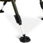 De stoel is voorzien van **rubberen voetjes**, die zorgen voor extra grip op zowel gladde als zachte ondergronden. Dit voorkomt dat de stoel wegglijdt of inzakt, waardoor je altijd stabiel en veilig zit, ongeacht de visomstandigheden.