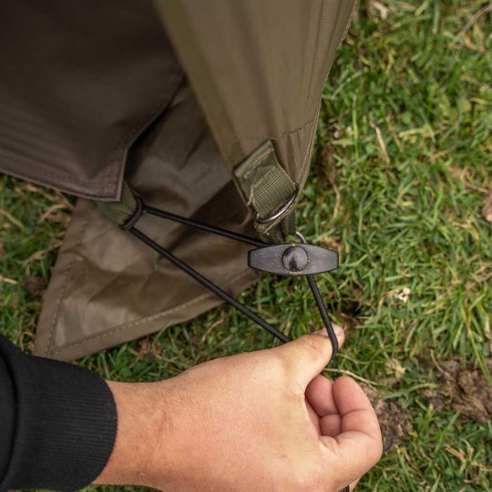 Dankzij het verlengde ontwerp vergroot dit grondzeil je leefruimte en geeft het je meer mogelijkheden om je spullen georganiseerd neer te zetten. Dit is ideaal voor langere vissessies waarbij je veel uitrusting nodig hebt. Het grondzeil houdt ook vuil en modder buiten, waardoor je opstelling netjes en comfortabel blijft, wat een groot verschil kan maken als je meerdere dagen aan het water bent.