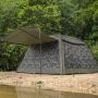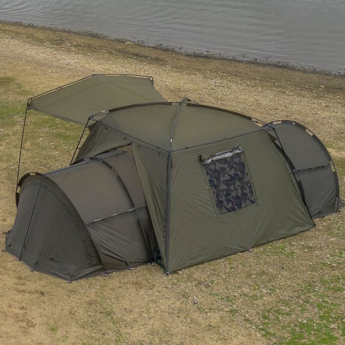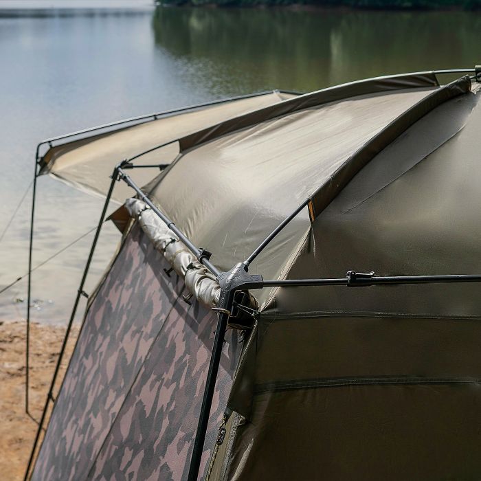 De nieuw ontworpen overkapping zorgt voor een toegenomen beschutting, een betere stabiliteit en een uitstekende afvoer van het regenwater. Hierdoor is dit de perfecte tent om in te zitten en relaxen, een plek waar je tafels, bagage en andere grote onderdelen van je uitrusting in op kunt slaan; artikelen die je niet op kunt slaan in je bivvy tijdens langere sessies.