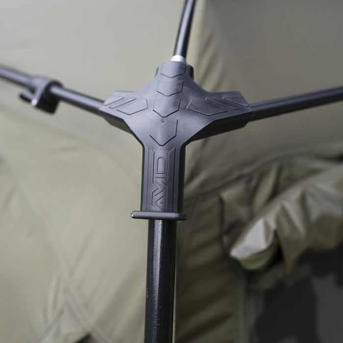 Een Avid camo opdruk is te vinden op de vier panelen, als aanvulling op het hoge kwaliteit, 10.000 mm hydrostatische materiaal dat voor de gehele schuilplaats gebruikt is; het maakt dit tot de Rolls Royce voor karpersessies en een gezamenlijk vissen in de VK en in Europa. Uitgevoerd met hoge kwaliteit camo mesh, dat bescherming biedt tegen ongedierte en tegen de zon indien nodig.