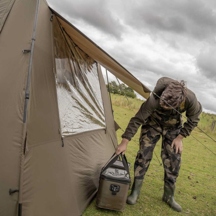 De verlengde zijpanelen en het ruime ontwerp bieden niet alleen extra bescherming, maar ook meer leefruimte. Dit is handig voor vissers die hun uitrusting goed georganiseerd willen hebben en graag wat extra ruimte hebben om te bewegen. De ventilatiepanelen van mesh zorgen ervoor dat er frisse lucht binnenkomt, terwijl ongewenste insecten buiten blijven.
