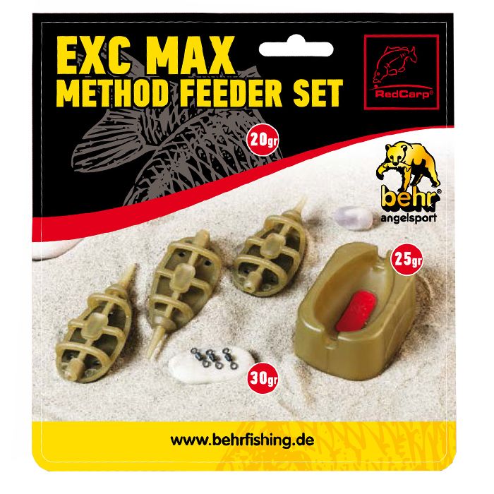Deze Behr method feeder set is perfect voor het voeren van karper of grove (grote) vis. Met de bijgeleverde mal kunt u het aas op de feeder drukken. Plaats gewoon je leader in de mal met wat aas, druk de feeder erin en je bent klaar om te vissen! Dit loodvrije materiaal is ook milieuvriendelijk.