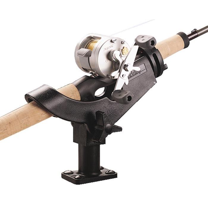 Een must have item voor alle booteigenaren. Dit is een zeer veelzijdige hengelhouder en kan op vier verschillende manieren worden gemonteerd: verzonken, op een voetstuk, aan de zijkant en op een reling. Eigenschappen Gemaakt van corrosiebestendig polypropyleen, de roterende borgring houdt de hengel op zijn plaats. Volledig horizontaal en verticaal verstelbaar.