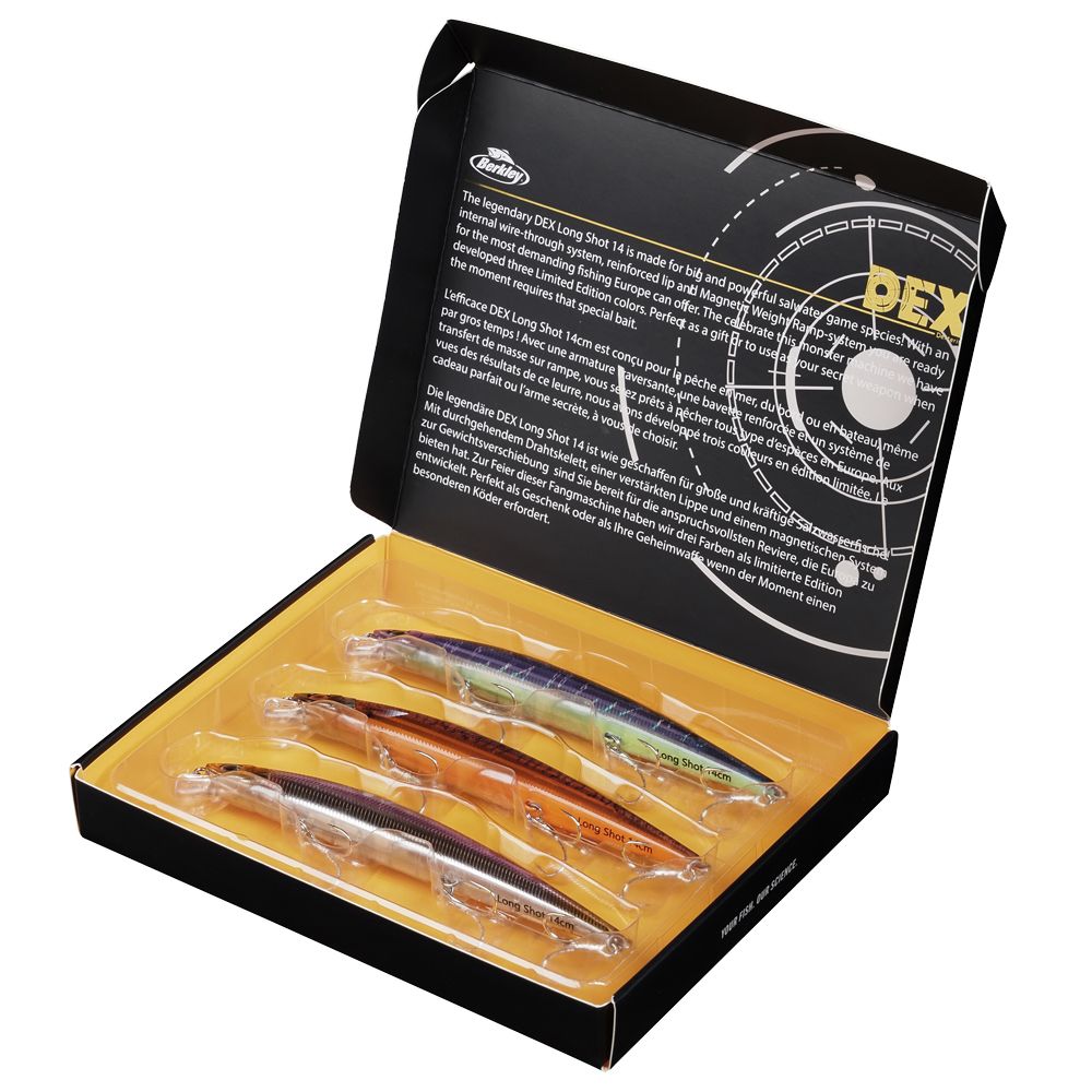The DEX Long Shot 140 has quickly found its place in tackleboxes around the world! Celebrate one of the most prolific bass lures on the market with this Limited Edition giftbox. This box contains three amazing colors, designed together with our best bass anglers.