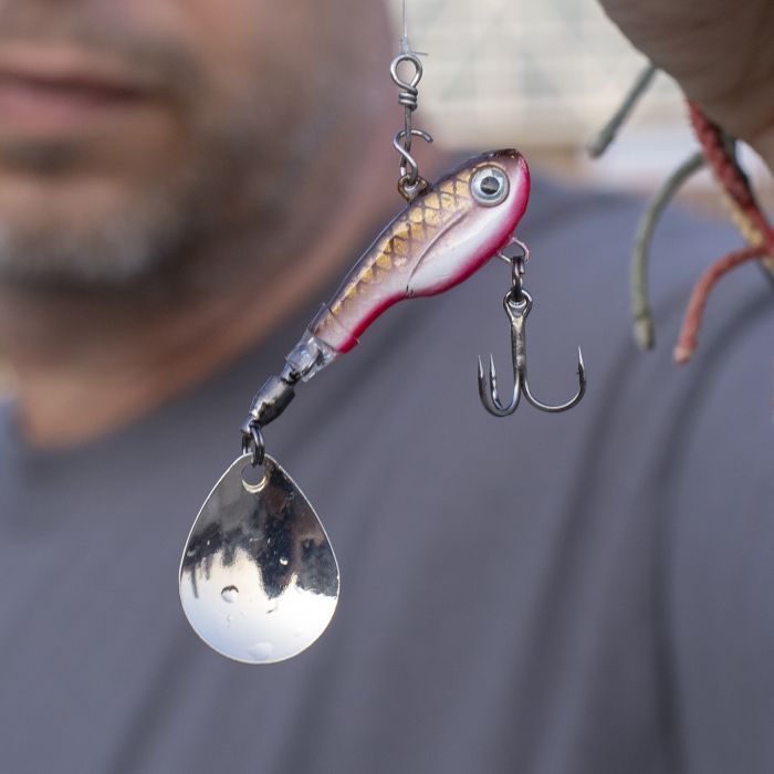 Het ontwerp van de Spintail heeft één groot en één klein blad die samenwerken bij het bewegen door het water om een maximale druk en beweging te creëren. Dit is perfect gecombineerd met de rest van het kunstaas, dat slechts 14 gram weegt, zodat het langzaam kan zinken wanneer het geworpen wordt.