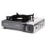 De **geïntegreerde pandrager** zorgt voor stabiliteit, zodat je potten en pannen veilig blijven staan tijdens het koken. Dit is een belangrijk veiligheidsaspect, vooral wanneer je op oneffen ondergronden aan het vissen bent. Wanneer je klaar bent met koken, kan het kooktoestel veilig worden opgeborgen in de meegeleverde **draagkoffer**, die compact en gemakkelijk te dragen is.