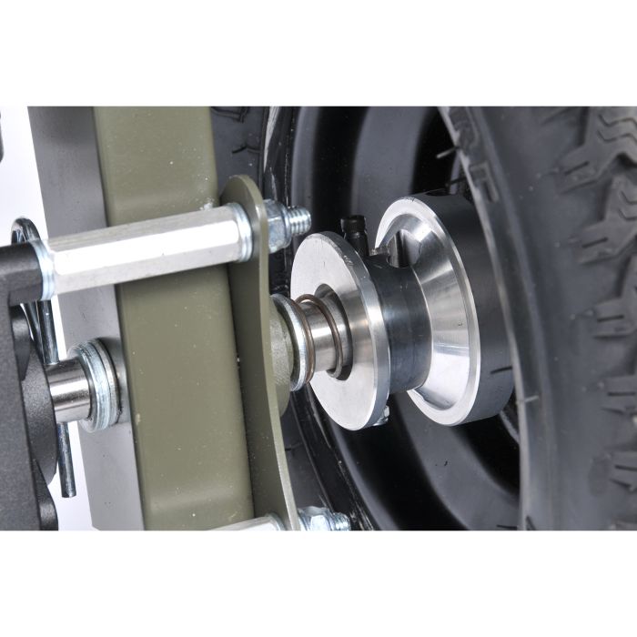 Een Kevlar-voorwiel geeft u gemoedsrust, op welk terrein u zich ook bevindt, met een lekbestendigheid die u op de been houdt als het moeilijk wordt. De EVO-transportkar zit vol met eigentijdse functies, waaronder een op maat gemaakte, waterdichte LED-snelheidsregelaar die de transportkar soepel in beweging houdt, voor een rustige rit, extra kracht lasergesneden voorassteunen en een drop-in tas-systeem dat volledig nieuw is voor dit bereik.