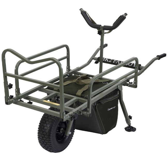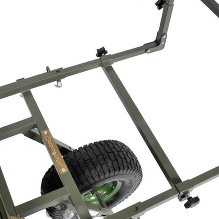 Verstelbare zijstangen geven je alle ruimte die je nodig hebt om jouw stretcher in te krijgen, terwijl de uitstekende voorstang ervoor zorgt dat je elk stuk bagage en uitrusting veilig en comfortabel op jouw transportkar kunt krijgen, je rug kunt sparen en gemakkelijk naar de kant van de oever kunt wandelen. En als je bijna geen ruimte meer hebt? De MK2 Fat Boy heeft een voorgemonteerde foedraal-ondersteuningsbalk voor precies die situatie. Er is zelfs een luxe transportkar met een ingebouwd klepje, zodat je gerust kunt stellen dat, zelfs als de hemelen weer opengaan terwijl je op de oever bent, of terug gaat, je kit volledig droog blijft.