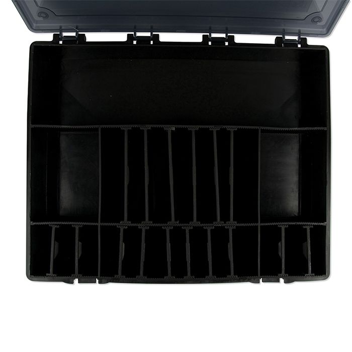 Carp Spirit Viskoffer voor het opbergen van al uw accessoires, gevlochten lijn, klein materiaal en bestaat uit: x1 - grote hoofd doos met verstelbare verdelers. x1 - rig opberg box met schuim inzetstukken en pinnen x1. x1 - kleine 2 sectie box. x2 - kleine 3 sectie box. x2 - kleine 4 sectie box. Getinte hoes om je accessoires te beschermen tegen de zon.
