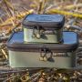 Verkrijgbaar in vier maten; 122, 126, 213, 343, Carp Spirit Hydro Visboxen zijn zowel lichtgewicht als duurzaam. Gemaakt van waterdicht materiaal en gelaste naden, elk model is voorzien van een dubbele rits opening deksel voor gemakkelijke toegang. De deksels zijn gemaakt van een UV-bestendig getint PVC. Het 343 model heeft bovendien een binnenzak van gaas met ritssluiting aan de onderkant, ideaal voor het opbergen van voorwerpen zoals aasnaalden of pakketten met haken enz.
